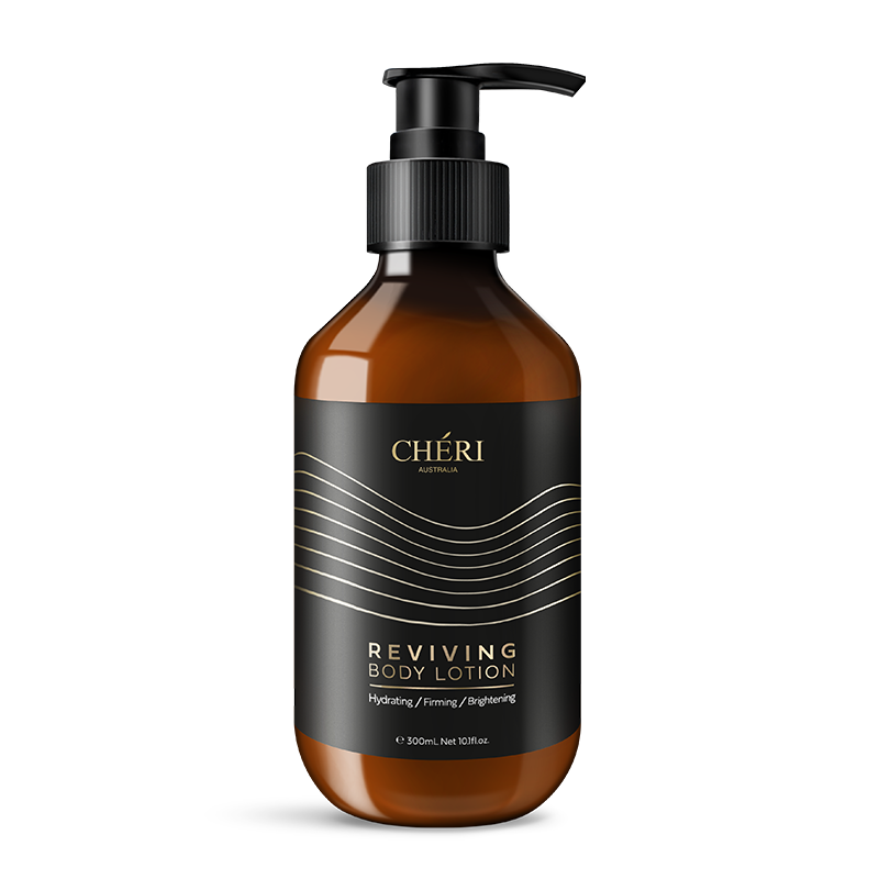 • This silky, restorative Cheri Reviving Body Lotion, is specifically formulated to penetrate into the deeper skin layer for a longer-lasting hydration effect. With a blend of Hyaluronic Acid, Niacinamide and Vitamin E, this non-greasy, water-based specially formulated lotion will brighten the look of skin, reviving it to appear silky soft and elastically youthful.